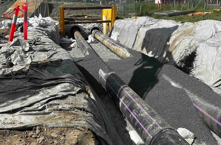 4x gravity sewer relocations (DN375 PVC, DN225 DIPU)